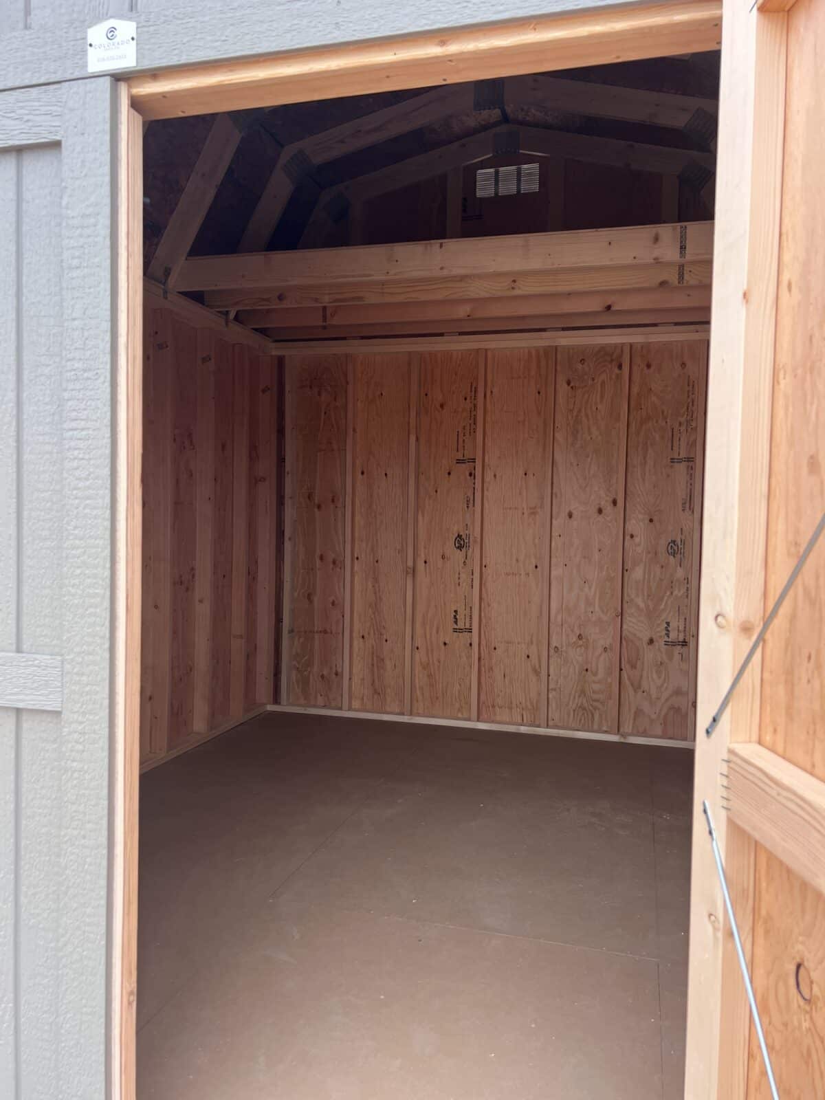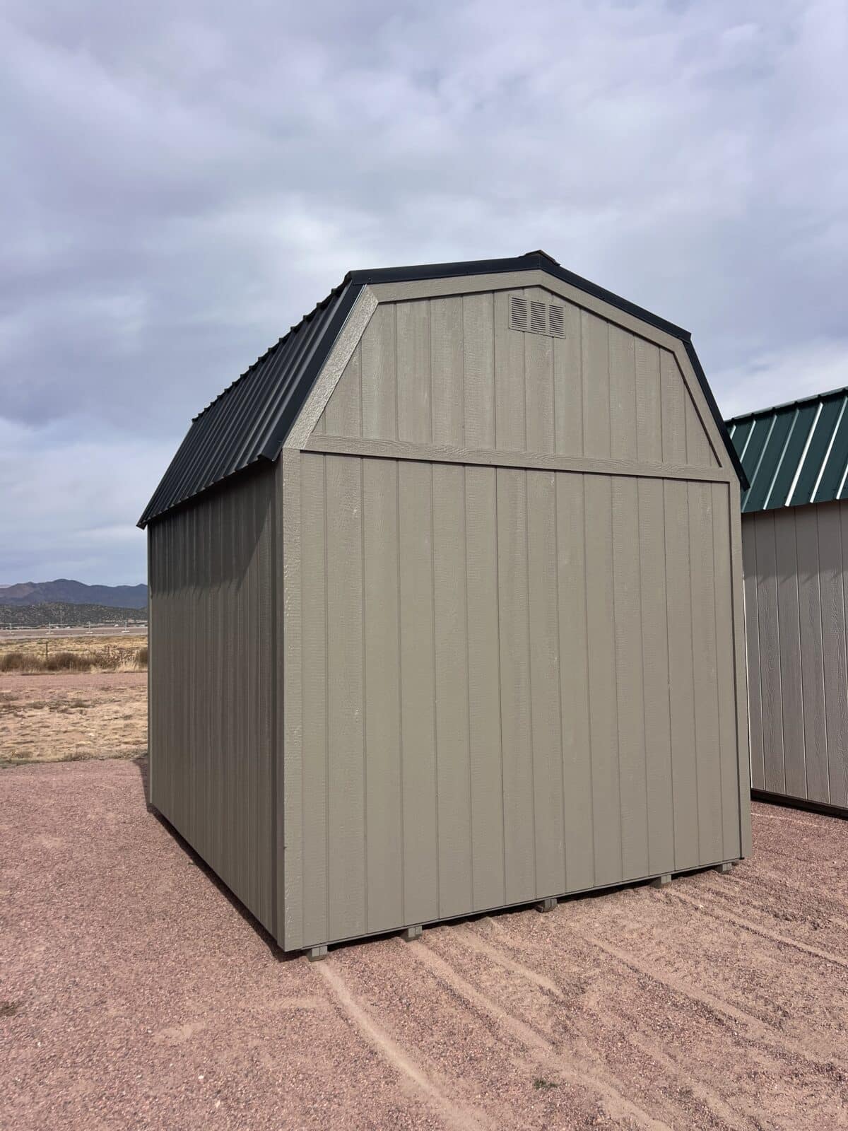 Add timeless charm and serious storage capacity to your backyard with this 10×12 Barn Style Shed. Designed for durability and functionality, it offers ample space for tools, equipment, and seasonal items—all while enhancing your property with classic barn-style appeal. The 6-foot double doors provide a wide opening for easy access to larger items, while the 4-foot loft adds convenient overhead storage for boxes, décor, or off-season gear. The gambrel-style roof not only gives the shed its signature barn look but also maximizes interior headroom, making it perfect for a workspace or organized storage. Built with high-quality materials to withstand the elements, this shed combines practicality, style, and lasting performance in one versatile package. This shed has painted Anonymous siding and trim with a black metal roof. Call in today!