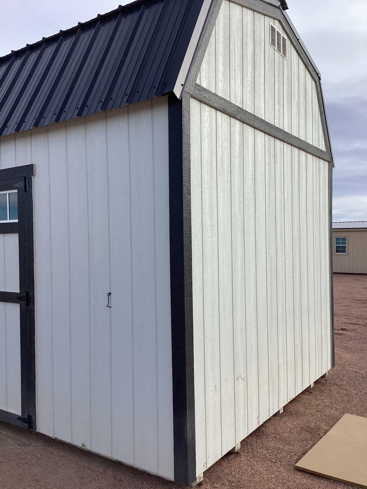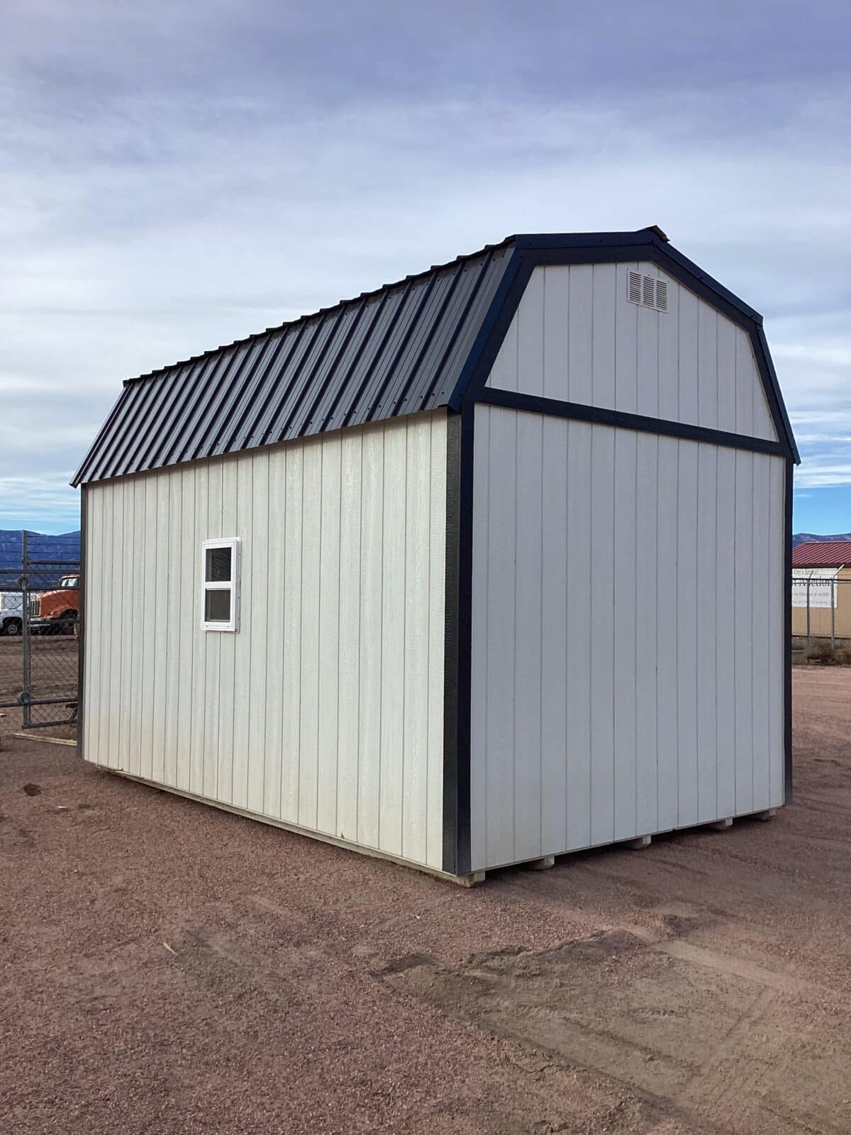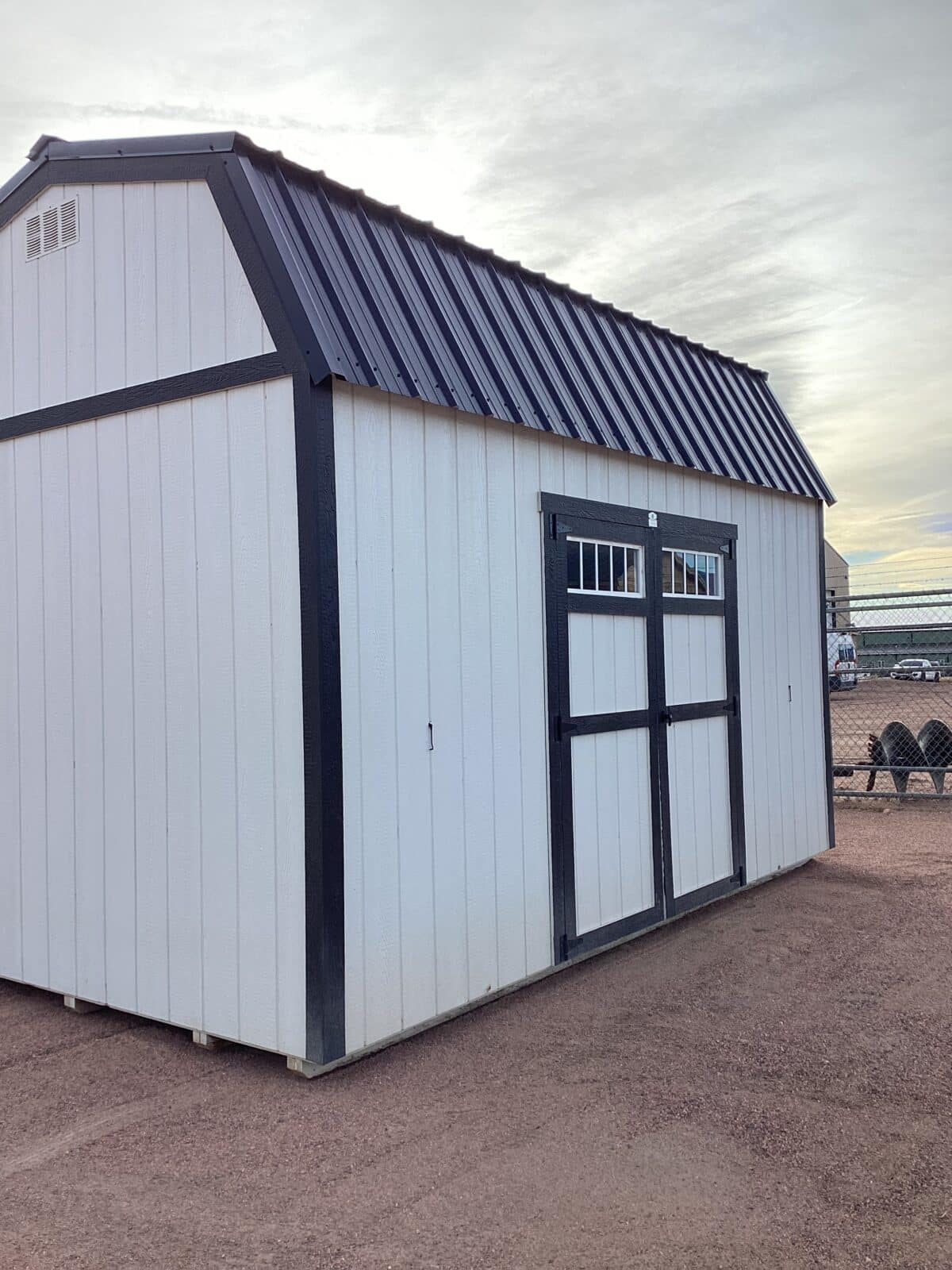 Check out this recently repoed 10×16 barn style! It comes with two 4’x 10′ Lofts, and 6′ double doors with windows, making it easy to get larger items in and out. This shed is painted Polar White with Black trim and a Black metal roof. Previous owners made cosmetic changes to the inside. Shed is sold as is.