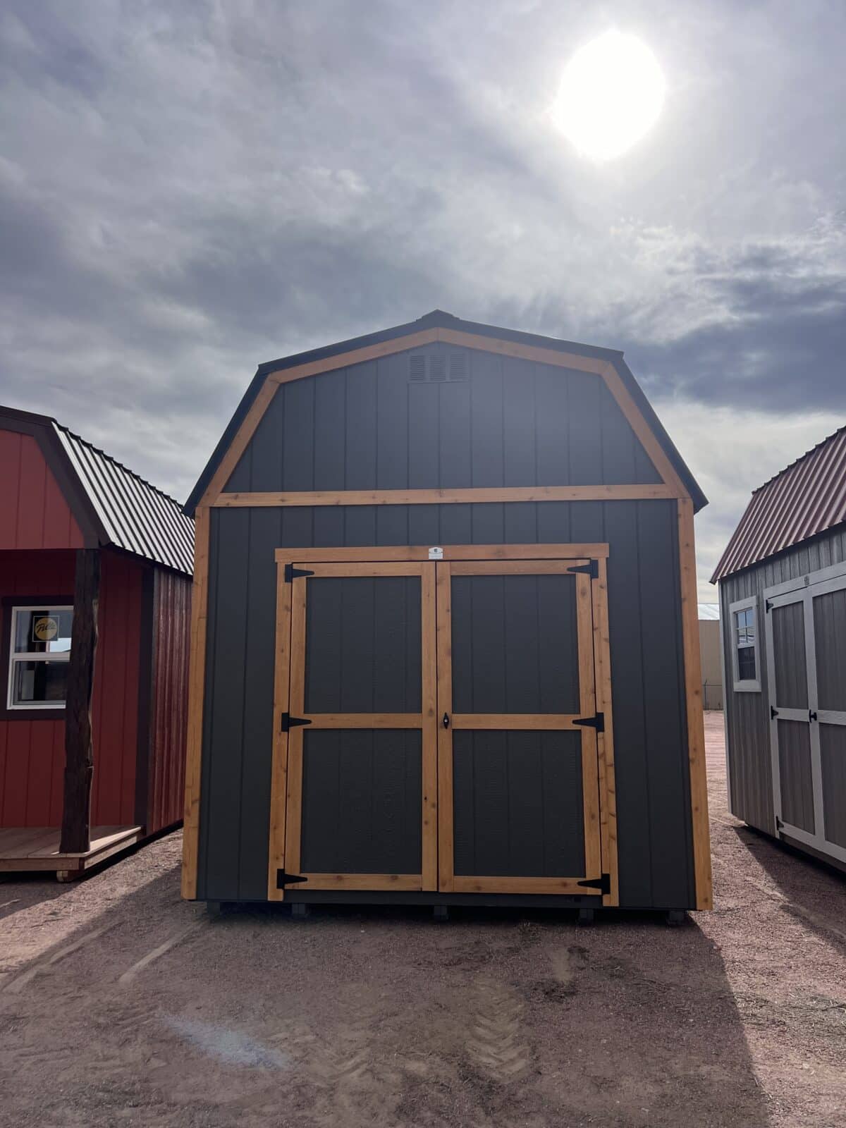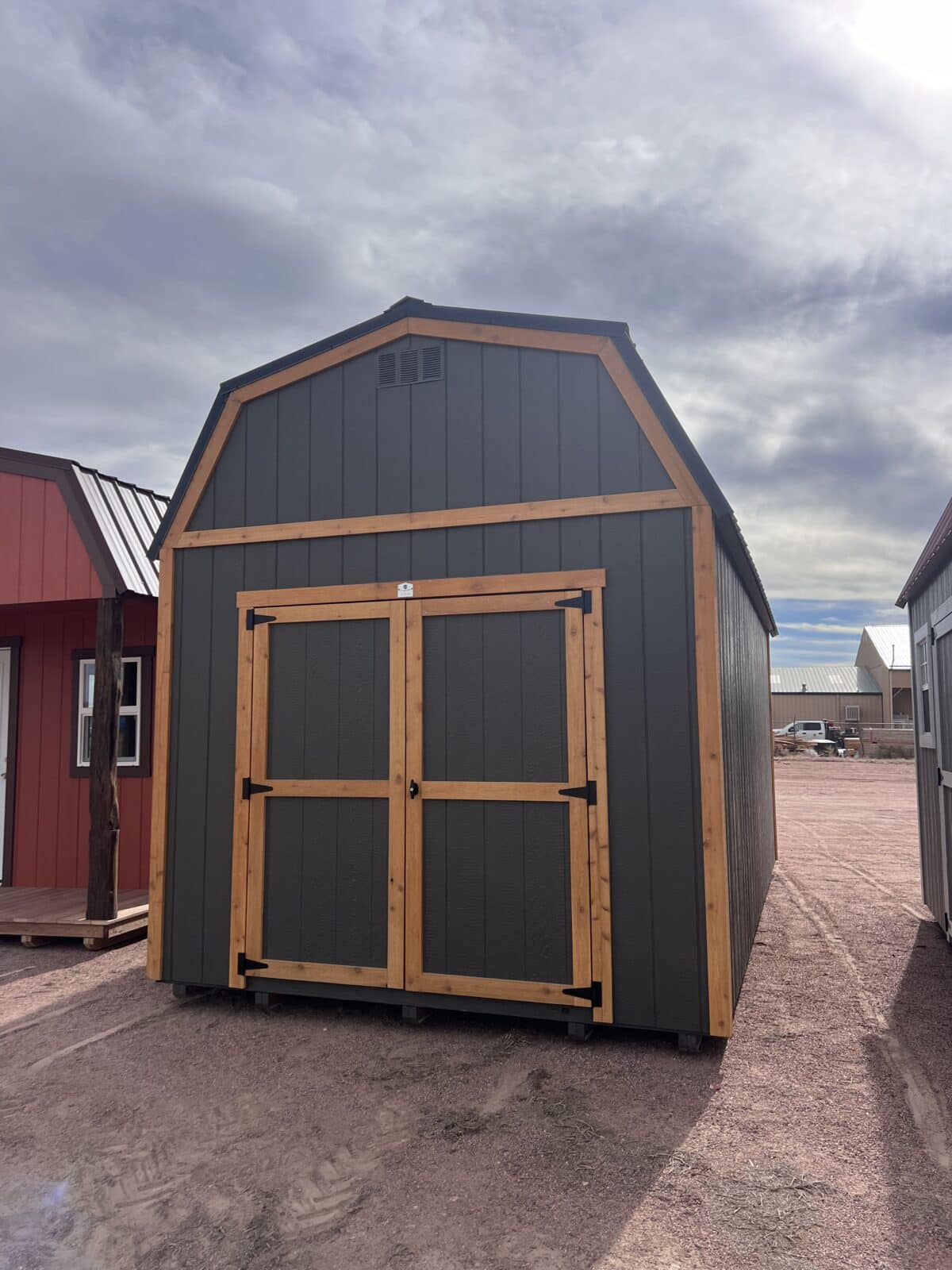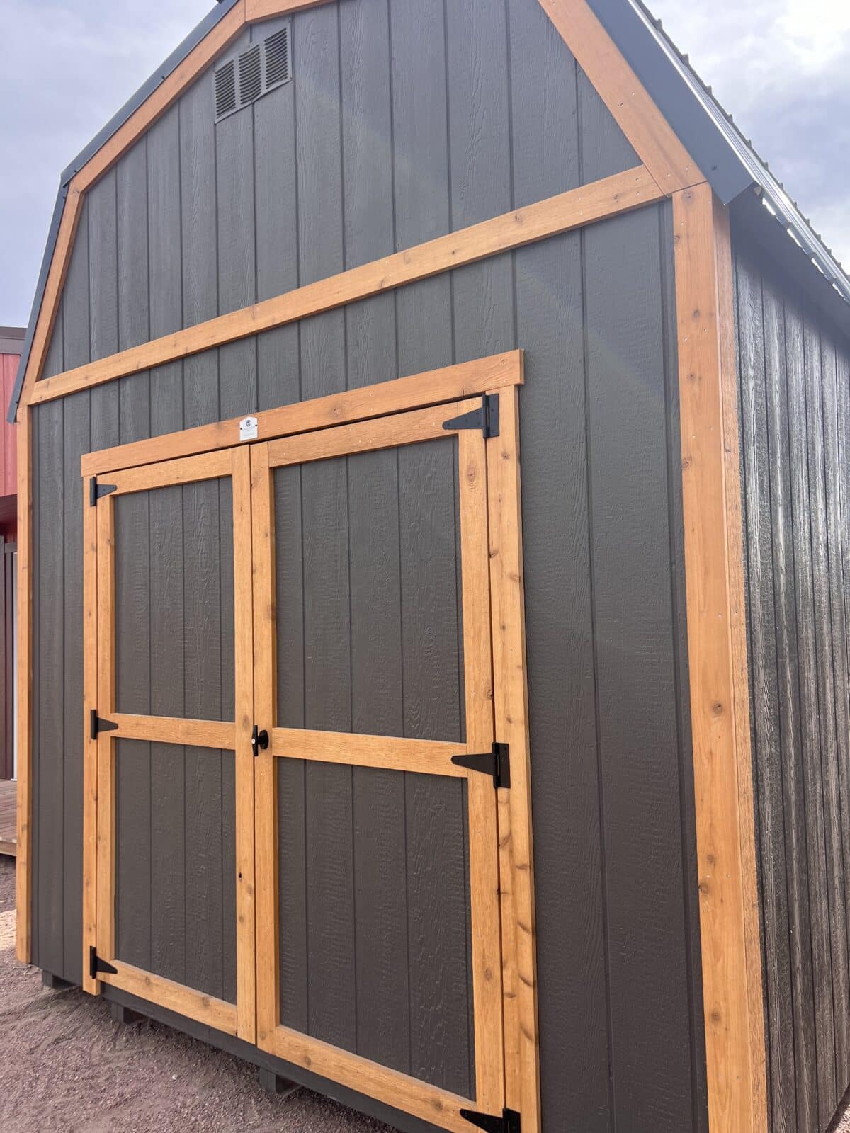 Upgrade your backyard with this modern 10×20 barn-style shed, a perfect blend of functionality and timeless charm. Featuring a spacious 6-foot double door, it offers easy access for lawn equipment, ATVs, or large storage items. Inside, the high barn roof design provides generous headroom and includes a 4-foot overhead loft, ideal for storing seasonal decorations, tools, or outdoor gear while keeping the main floor open and organized. Built for durability and style, this shed is crafted with high-quality materials and clean, contemporary lines that complement any property. Whether you need extra storage, a workshop, or a hobby space, this modern barn shed delivers versatility, strength, and great curb appeal. This shed is painted Urbane Bronze with beautiful Natural stained cedar trim with a black metal roof. Call in today!