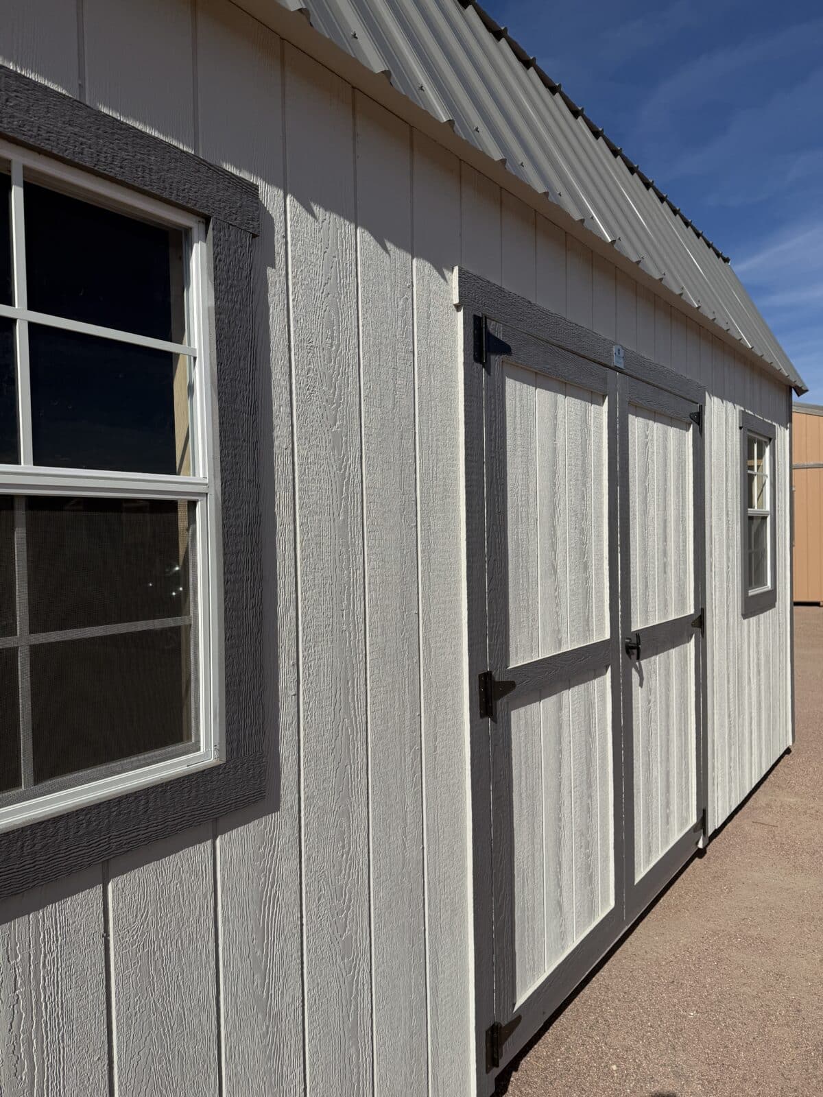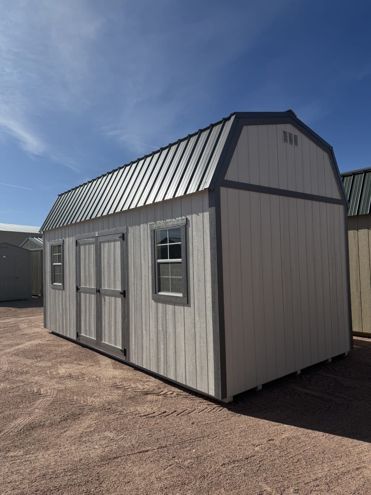This 10×20 Barn-style shed blends classic looks with serious functionality. It features 6′ double doors for easy access to equipment, tools, or larger items, along with two 24×36 windows that flood the interior with natural light. Four-foot lofts on each end maximize storage space without sacrificing floor area, making it ideal for organization or seasonal storage. Finished in Repose Gray painted siding with Charcoal Gray painted trim and topped with a durable Charcoal Gray metal roof, this barn offers a clean, modern look that complements any property while delivering long-lasting performance.