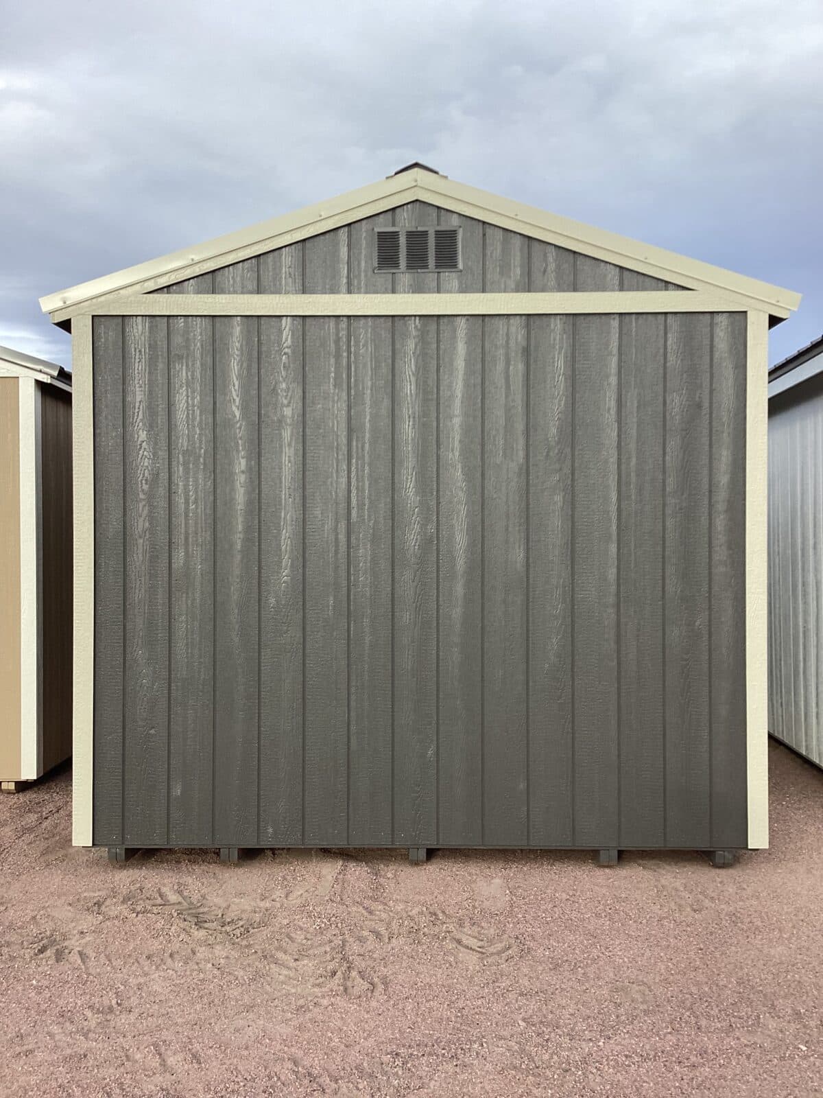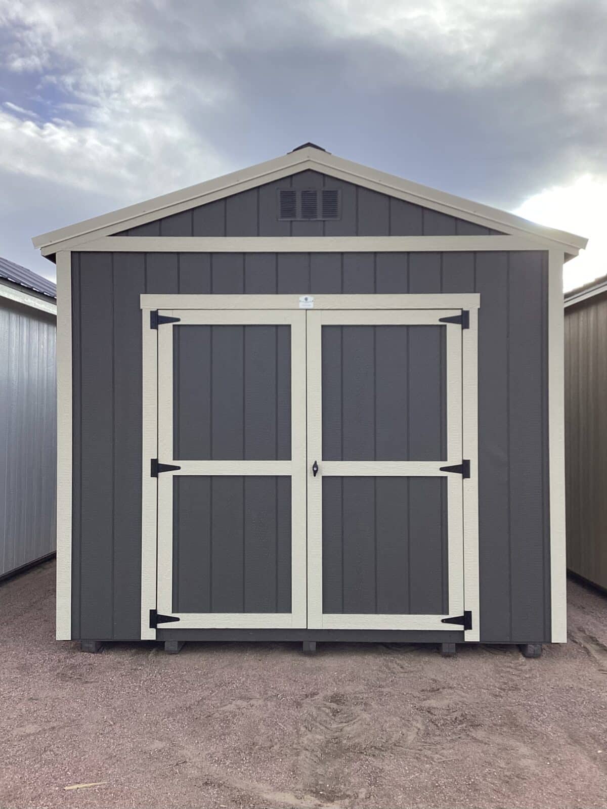 This 10×20 Gable shed delivers a clean, modern look with durable functionality. It features a striking Light Stone metal roof paired with matching painted trim, creating a crisp contrast against the rich Urbane Bronze painted siding. The 6′ double doors provide wide, easy access for larger equipment, tools, or recreational gear, making it perfect for storage, workshop use, or hobby space. Designed for long-lasting performance and timeless style, this shed enhances any property while giving you dependable room to grow.