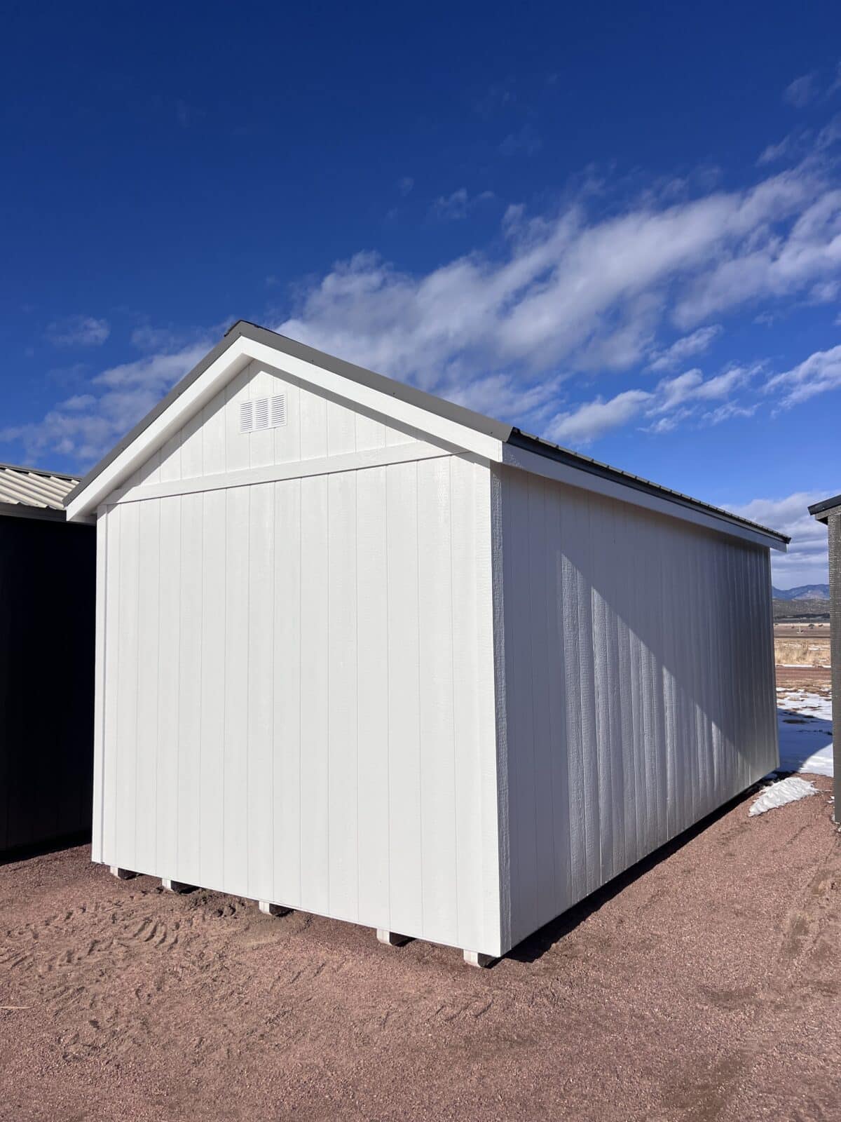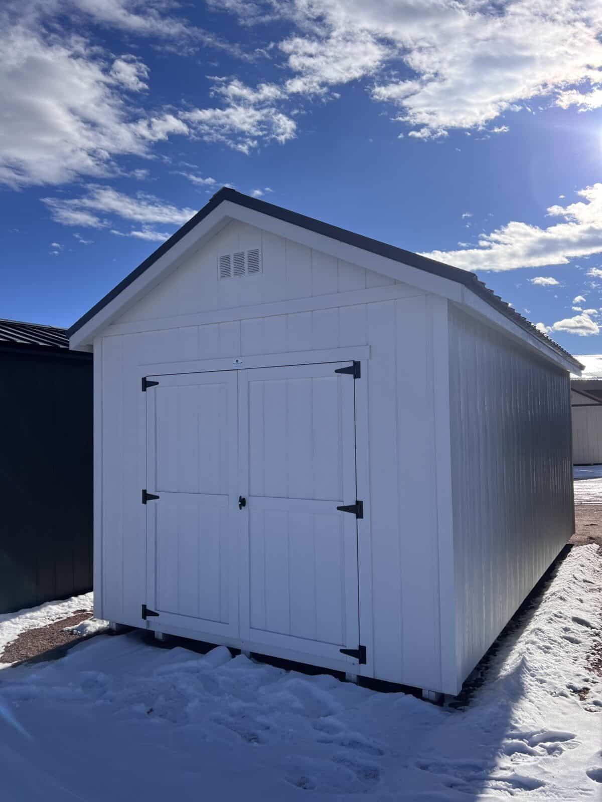 The 10×20 Studio Gable is the perfect blend of modern style and everyday functionality. Featuring a wide 6′ double door entry, this shed makes it easy to move large items in and out while giving the space a clean, versatile layout. The exterior is finished with a sleek Charcoal Gray metal roof paired with Extra White painted trim and matching painted siding—creating a crisp, contemporary look that fits beautifully in any backyard. Durable, attractive, and built for long-term use, this Studio Gable is ideal for storage, hobbies, or transforming into a personalized workspace.