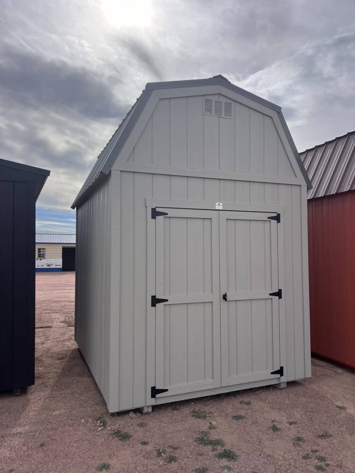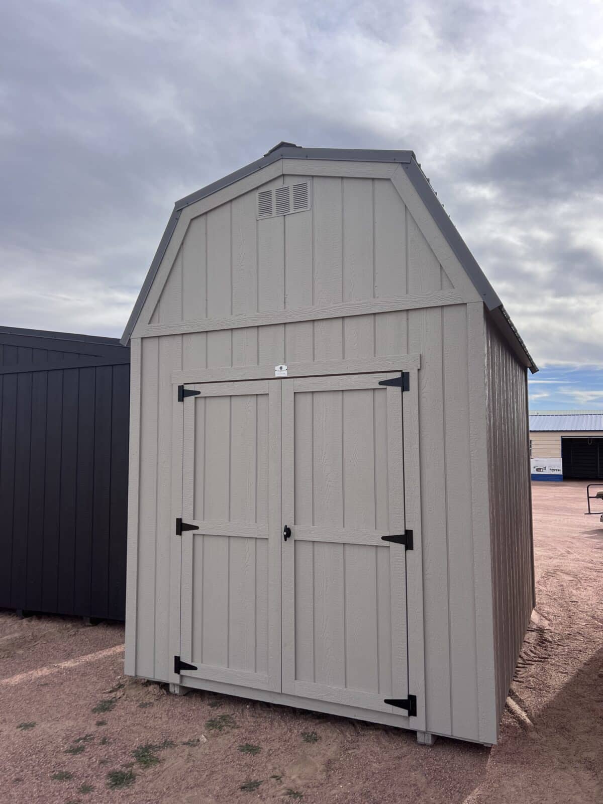This modern 8×10 barn-style shed combines timeless charm with practical design, offering the perfect balance of storage and style for your backyard. Featuring a spacious 5-foot double door, it provides easy access for larger equipment, lawn tools, or outdoor furniture. The classic barn roofline not only adds rustic appeal but also creates extra overhead space, complemented by a convenient 2-foot loft for storing seasonal items, boxes, or tools you want kept off the floor. Built with durable materials and clean, contemporary finishes, this shed delivers reliable protection and an attractive centerpiece for any property. Whether used as a garden shed, workshop, or storage space, it’s a smart and stylish solution for all your organizational needs. This shed is painted Dorian Gray with matching trim and a Charcoal Gray metal roof. Call in today for more info!