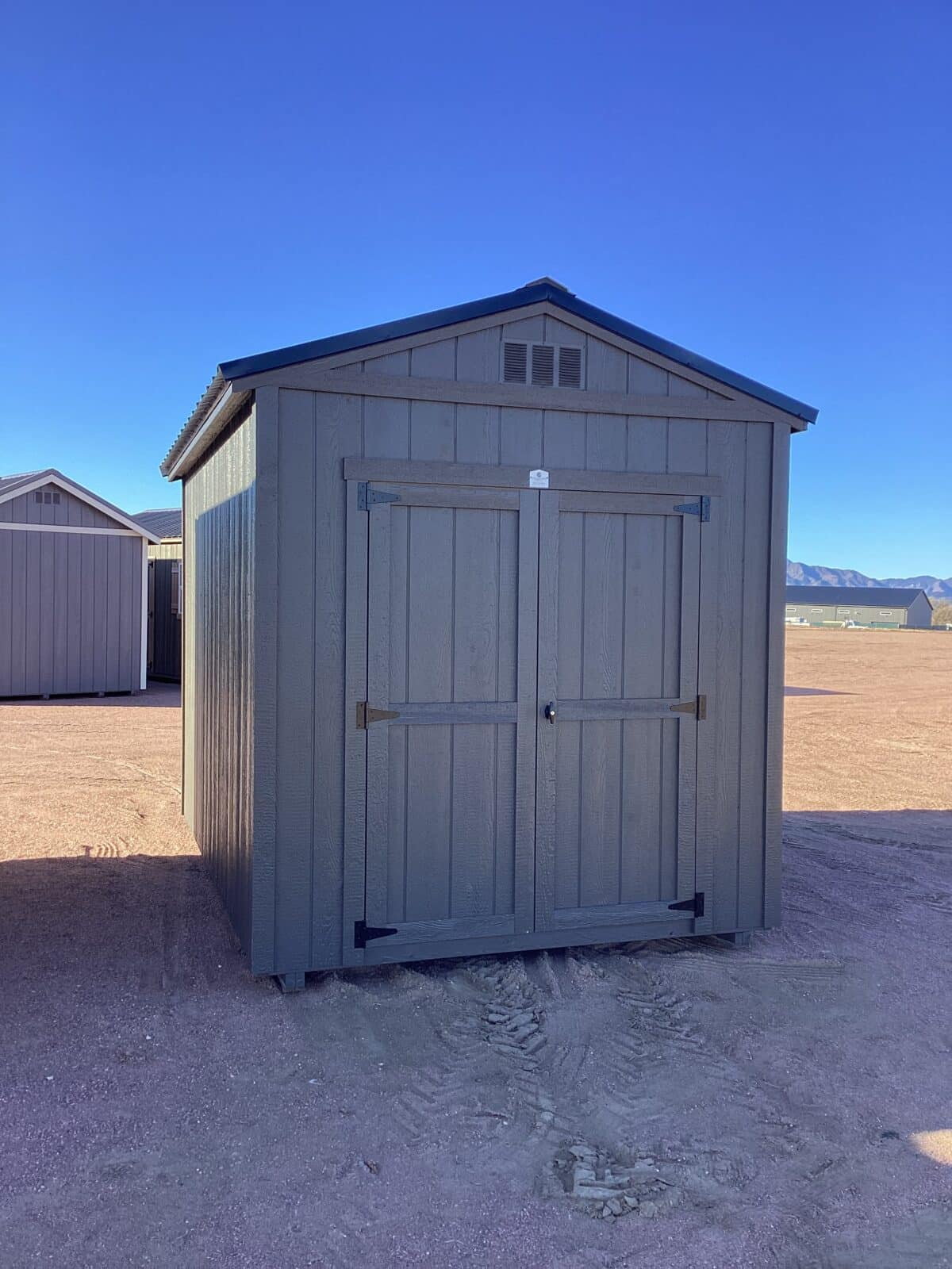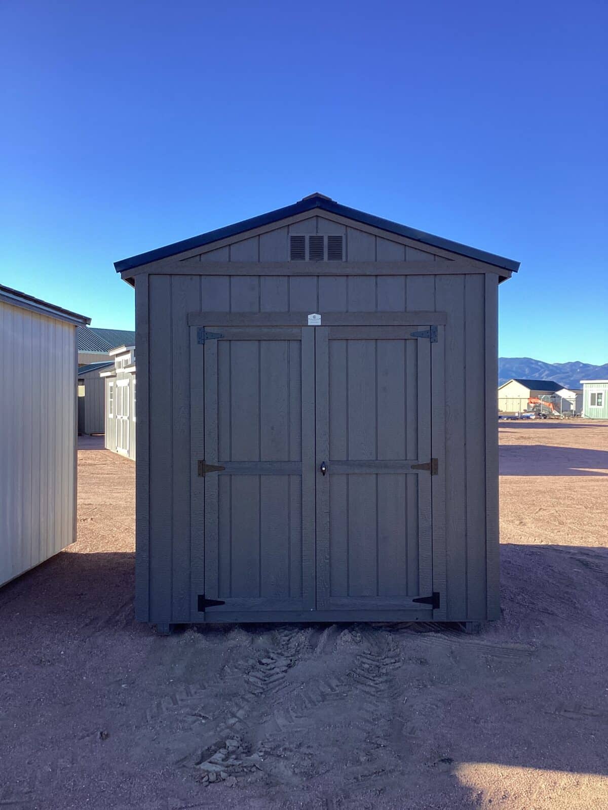 This 8×12 Gable shed combines clean design with durable construction, featuring a sturdy metal roof and Urbane Bronze painted siding and trim for a modern, upscale look. Its 5′ double doors provide easy access for mowers, tools, and larger equipment, while the efficient layout offers plenty of room for storage or workspace. Built for long-lasting performance and timeless style, this shed is a practical and attractive addition to any property.